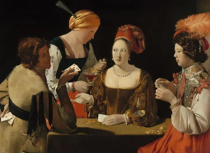 Œuvre de : La Tour, Georges de Hauteur de l’original : 106,00 cm Largeur de l’original : 146,00 cm Période : 17e siècle, période moderne (Europe occidentale) Technique : huile sur toile La Tour, Georges de – Le Tricheur à l’as de carreau – huile sur toile © RMN-Grand Palais (musée du Louvre)