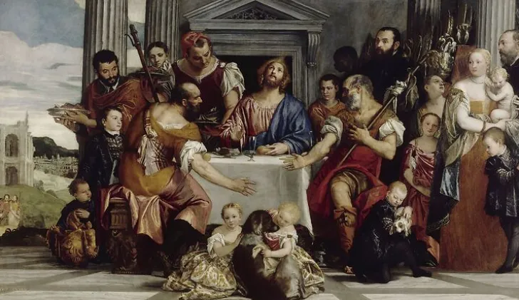Œuvre de : Véronèse Hauteur de l’original : 241,00 cm Largeur de l’original : 415,00 cm Période : période moderne – Renaissance, 16e siècle Technique : huile sur toile Véronèse – Les Pèlerins d’Emmaüs – huile sur toile Photo © RMN-Grand Palais (musée du Louvre)