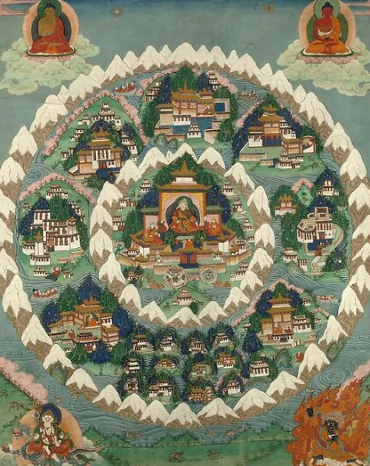 Œuvre de : Anonyme Hauteur de l’original : 68,00 cm Largeur de l’original : 53,00 cm Période : 19e siècle Technique : peinture sur toile, détrempe Anonyme – Paradis d’un dieu non identifié – peinture sur toile, détrempe © RMN-Grand Palais (musée Guimet, Paris)