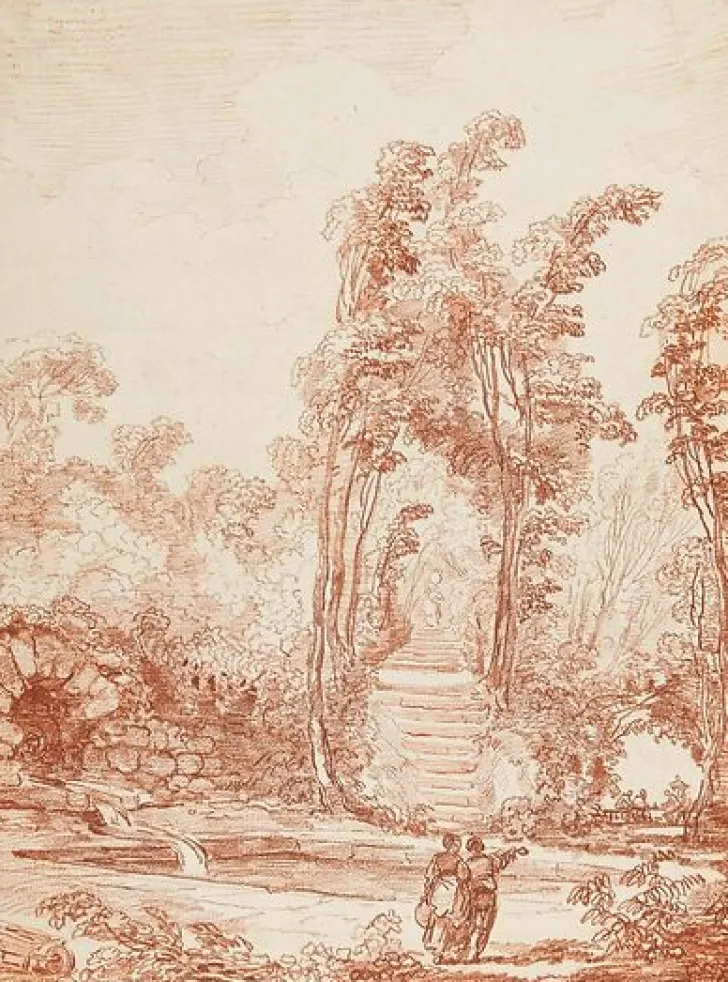 Œuvre de : Hubert Robert Hubert Robert – Personnages prés d’un bassin Paris, Musée du Louvre