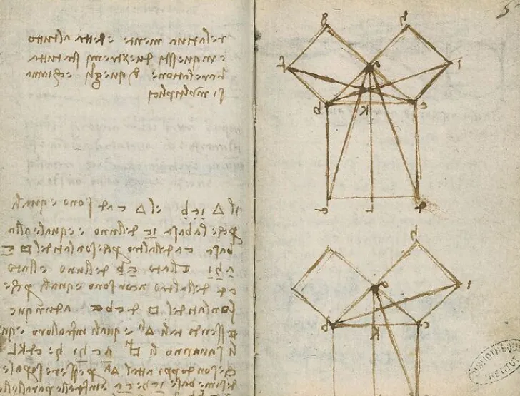 Œuvre de : Léonard de Vinci La démonstration euclidienne du théorème de Pythagore, Léonard de Vinci, vers 1503-1507 © Photo Rmn-GP (Institut de France) – R.-G. Ojéda I © Rmn – Grand Palais, Paris 2019