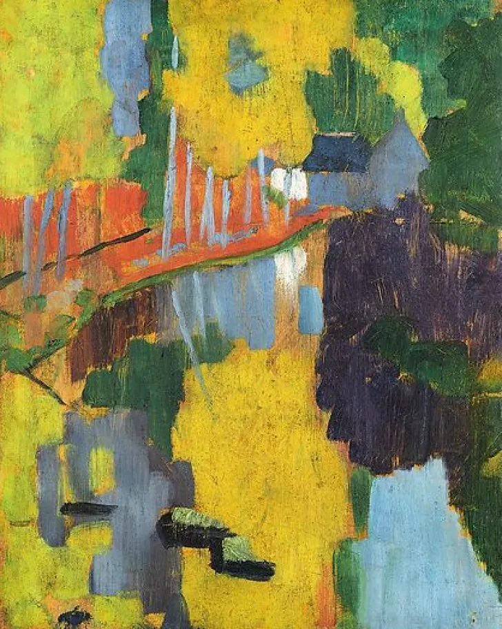Œuvre de : Sérusier, Paul PAUL SÉRUSIER (1864 – 1927) Le Talisman, dit aussi Paysage au Bois d’Amour (détail), 1888 I Huile sur bois. H. 27 ; L. 21,5 cm I Paris, musée d’Orsay. Acquis avec la participation de Philippe Meyer par l’intermédiaire de la Lutèce Foundation, 1985 I © Photo musée d’Orsay, dist. Rmn-GP – P. Schmidt © Rmn-Grand Palais, Paris 2018.