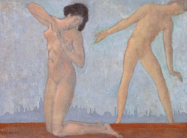 Œuvre de : Davies Arthur Bowen Hauteur de l’original : 58,80 cm Largeur de l’original : 80,00 cm Davies Arthur Bowen – Japonaise nue agenouillée et adolescent nu debout © RMN-Grand Palais (Château de Blérancourt)