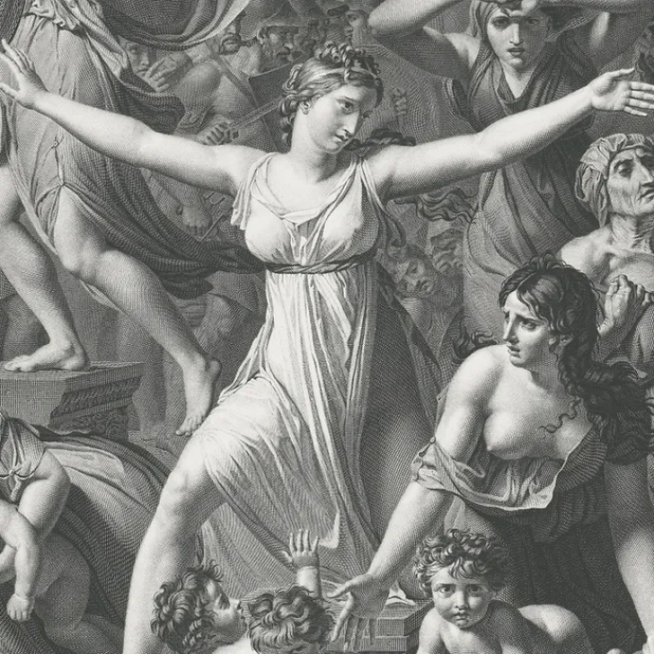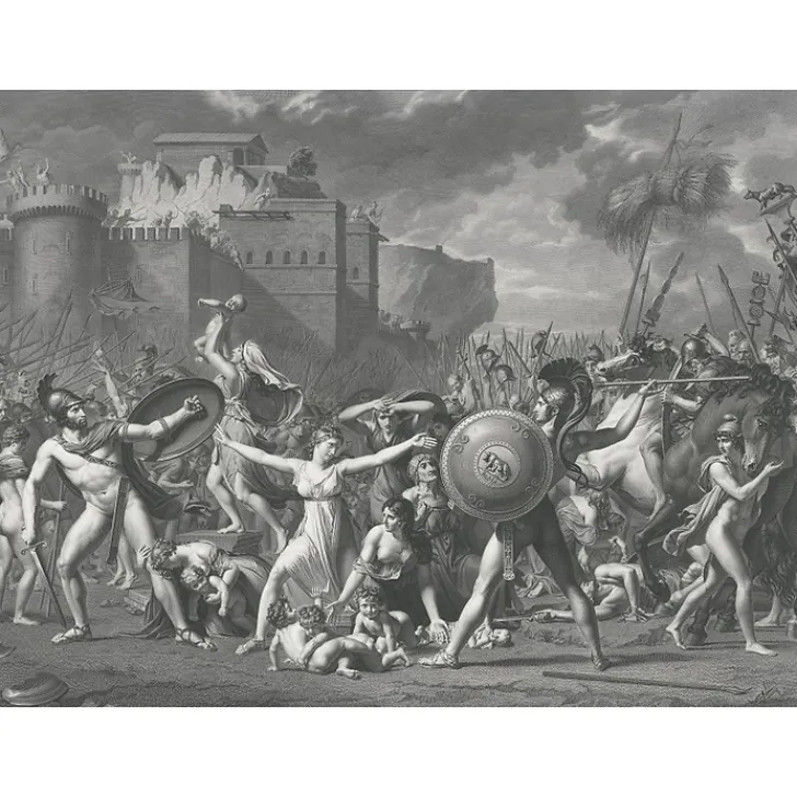 Peintre du 18ème siècle, Jacques-Louis David débute ses études à l’Académie de Saint-Luc à Paris, avant de suivre l’enseignement du peintre Joseph-Marie Vien. Cette rencontre marque le début de son intérêt pour le néo-classicisme français, dont Vien est le précurseur. Ses talents de peintre sont déjà reconnus lorsqu’en 1771, il obtient le second prix de Rome pour le Combat de Mars contre Minerve, mais c’est surtout le Serment des Horaces (1784) qui lui confère sa renommée. Passionné de Napoléon Bonaparte, l’artiste réalise Le Sacre de Napoléon (1805-1807), Bonaparte franchissant le Grand-Saint-Bernard (1805) et Napoléon dans son cabinet de travail (1812). Il deviendra peintre officiel de l’Empire, avant de connaître l’exil à Bruxelles.