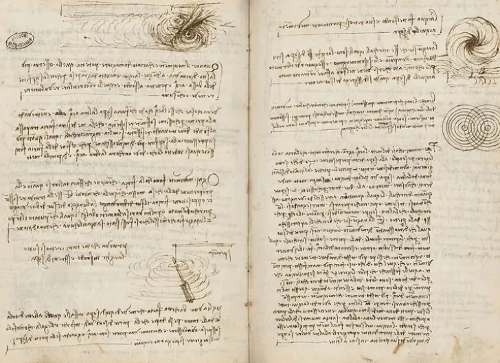 Œuvre de : Léonard de Vinci Phénomènes tourbillonnaires et ondulatoires, schéma d’interférences d’ondes circulaires, Léonard de Vinci, vers 1490-1492 © Photo Rmn-GP (Institut de France) – M. Urtado I © Rmn – Grand Palais, Paris 2019