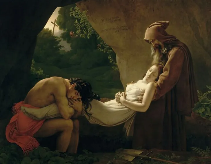Œuvre de : Girodet De Roussy-Trioson, Anne-Louis Hauteur de l’original : 207,00 cm Largeur de l’original : 267,00 cm Période : période contemporaine de 1789 à 1914, 19e siècle Technique : huile sur toile Girodet De Roussy-Trioson, Anne-Louis – Atala au tombeau dit aussi Funérailles d’Atala – huile sur toile © RMN-Grand Palais (musée du Louvre)