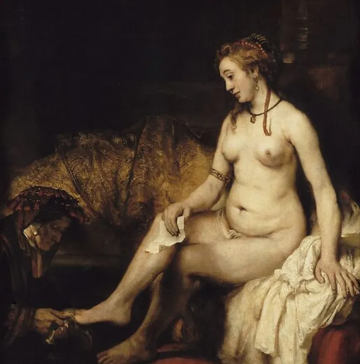 Œuvre de : Rembrandt, Harmensz van Ryn Hauteur de l’original : 142,00 cm Largeur de l’original : 142,00 cm Période : 17e siècle, période moderne (Europe occidentale) Technique : huile sur toile Rembrandt, Harmensz van Ryn – Bethsabée au bain – huile sur toile © RMN-Grand Palais (musée du Louvre)