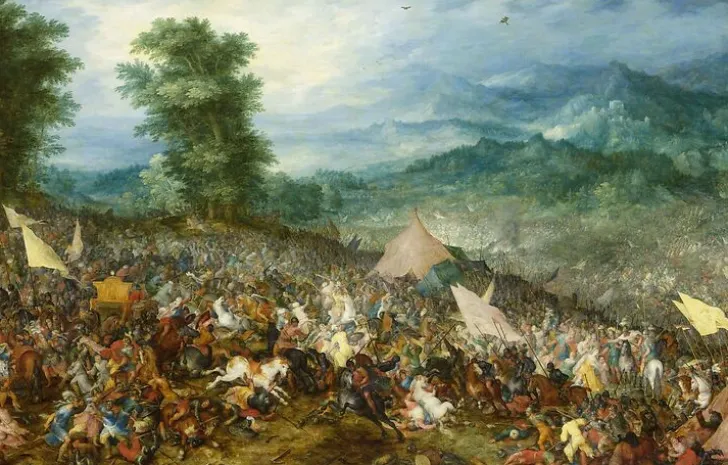 Œuvre de : Brueghel de Velours (dit), Brueghel Jan I Hauteur de l’original : 86,00 cm Largeur de l’original : 135,00 cm Période : 17e siècle, 16e siècle, Europe (période) – période moderne Technique : huile sur bois Brueghel de Velours (dit), Brueghel Jan I – La bataille d’Issos dit autrefois Bataille d’Arbelles – huile sur bois Photo © RMN-Grand Palais (musée du Louvre)