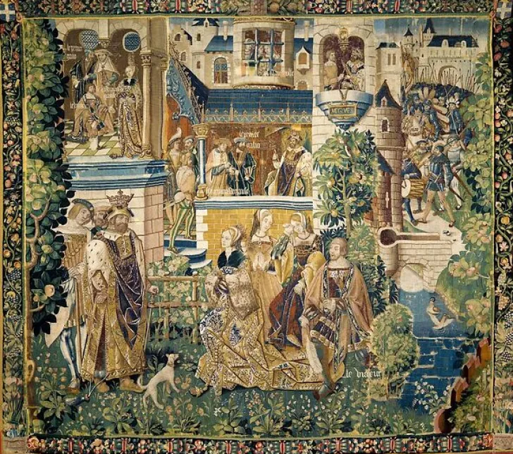 Œuvre de : L’Inflexibilité du roi (détail) Anonyme L’Inflexibilité du roi (détail), Paris, vers 1525 ‘ Tapisserie de laine et soie. H. 415 ; L. 483 cm Paris, musée national du Moyen Âge, thermes de Cluny © Photo Rmn – GP (musée de la Renaissance, château d’Écouen), M. Rabeau