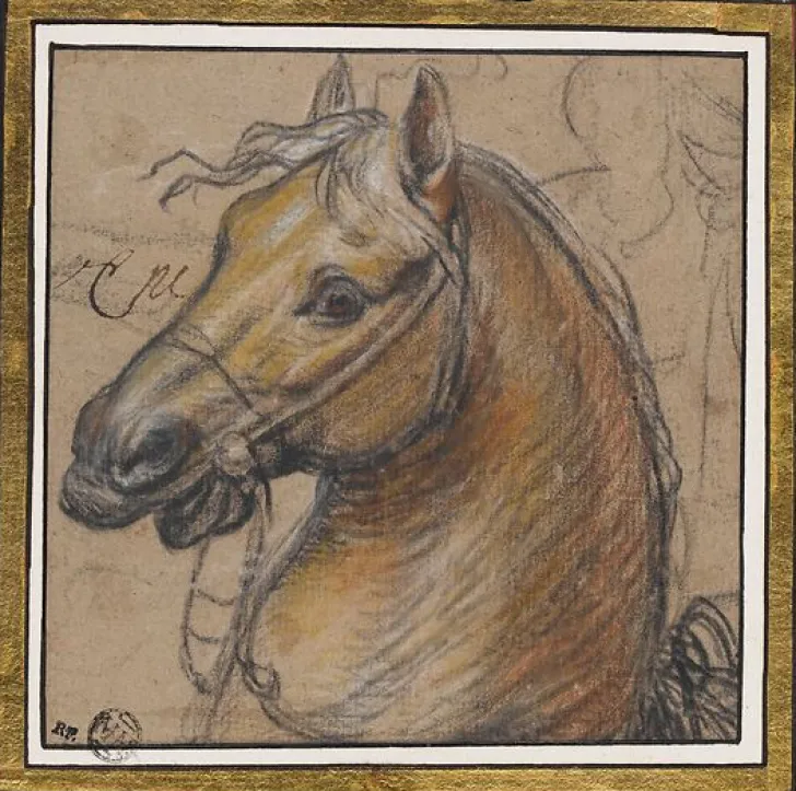Œuvre de : Le Brun Charles Hauteur de l’original : 12,80 cm Largeur de l’original : 12,90 cm Période : 17e siècle, période moderne (Europe occidentale) Technique : gouache Le Brun Charles – Tête de cheval – gouache © RMN-Grand Palais (musée du Louvre)